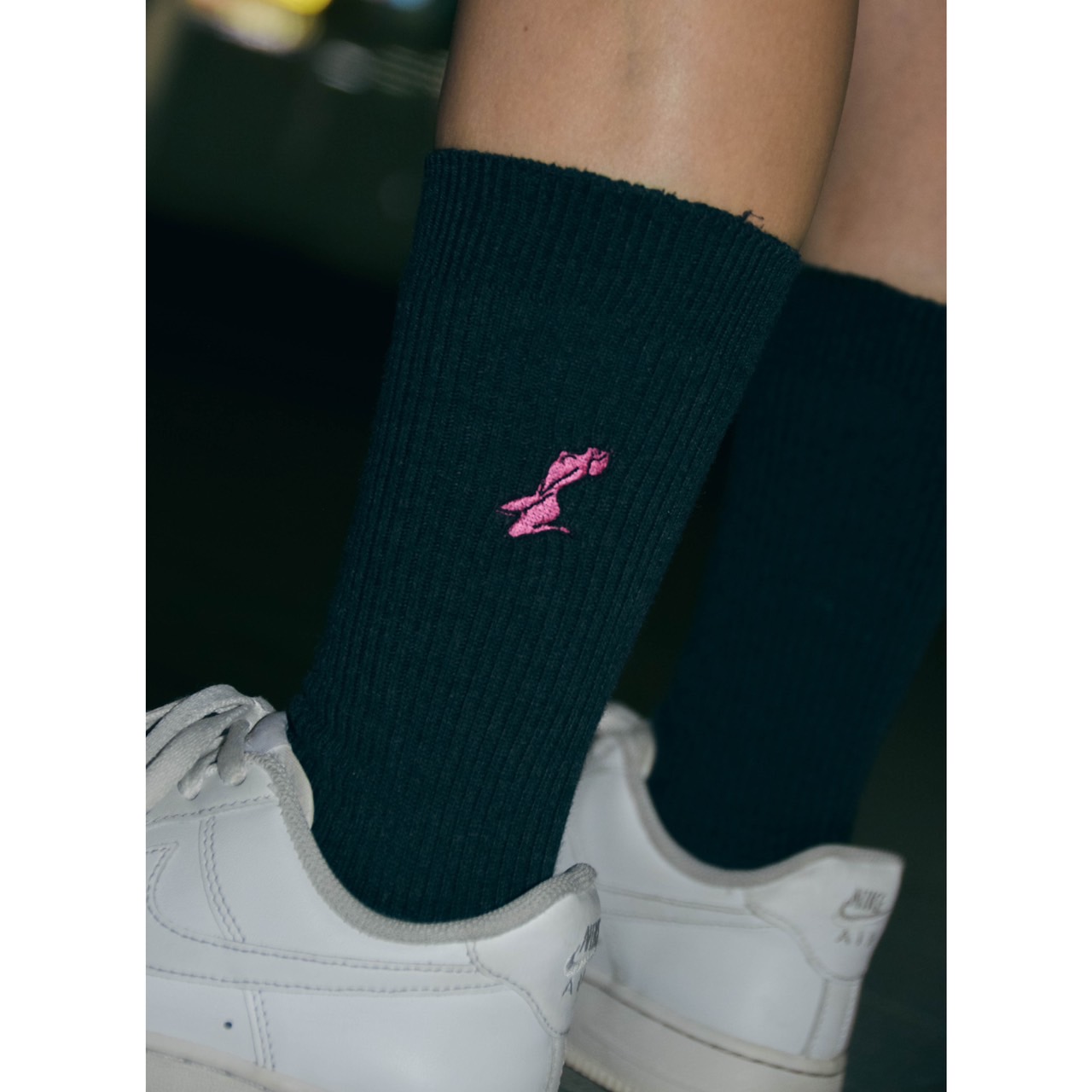 Omiramのロゴ入りのシンプルソックスです!✨ ピンクとチャコールの色合いでどんな洋服にも馴染みます!